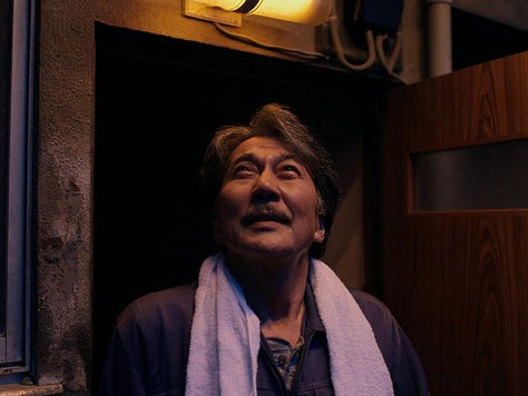 Perfect Days has 2 hours and 04 minutes. It focuses on one character, Hirayama, and his daily routine. We are at all times watching the present moment on which the character lives in. Even though Hirayama is mostly serene, his moments of suffering and loss also appear throughout the movie. The moment his sister asks if he’s going to visit his father on his deathbed is one of those.