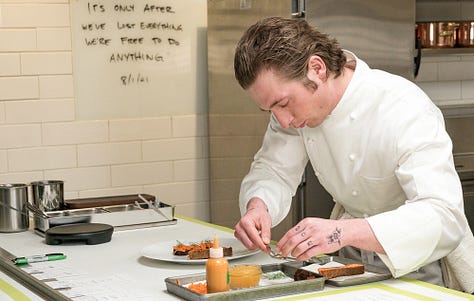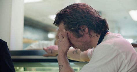 When we think about hours watched, The Bear has 28 episodes with 34 minutes each. That's 15.8 hours. We have time to follow the development of Carmy and other main characters of the series. That's way more time to contextualize. We can see their daily struggles, relationships, desires and worries. We can also see that their moments of satisfaction and presence exist, even though they are not the focus.